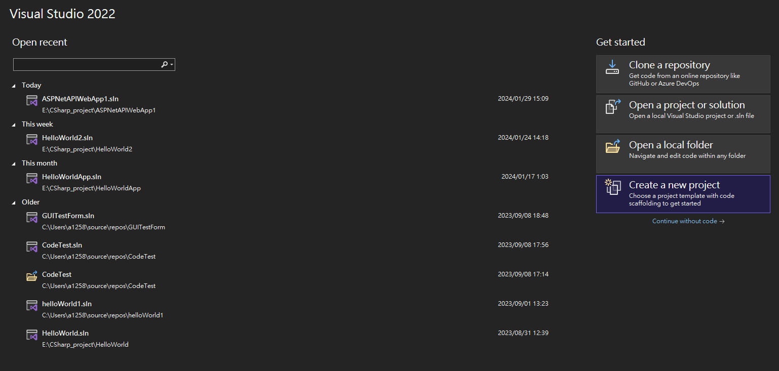 After creating the project, we can see visiual studio have already help us to generate some template files.