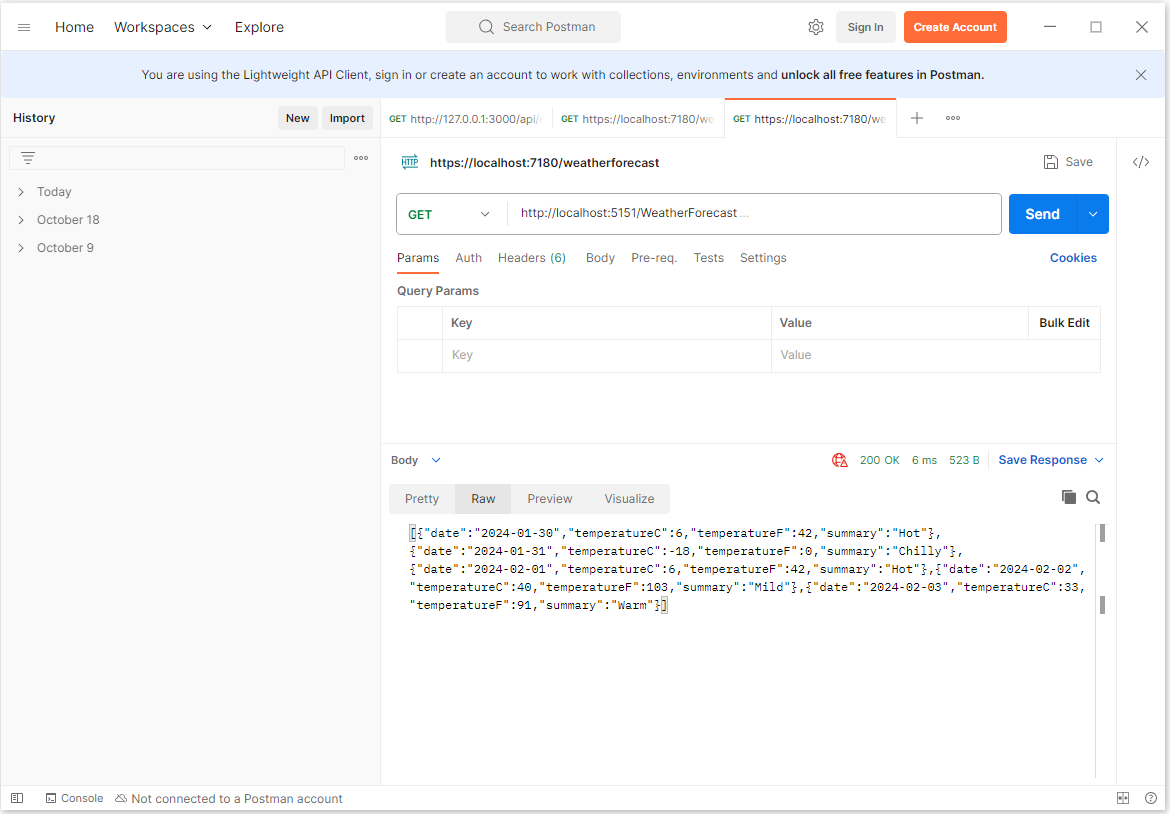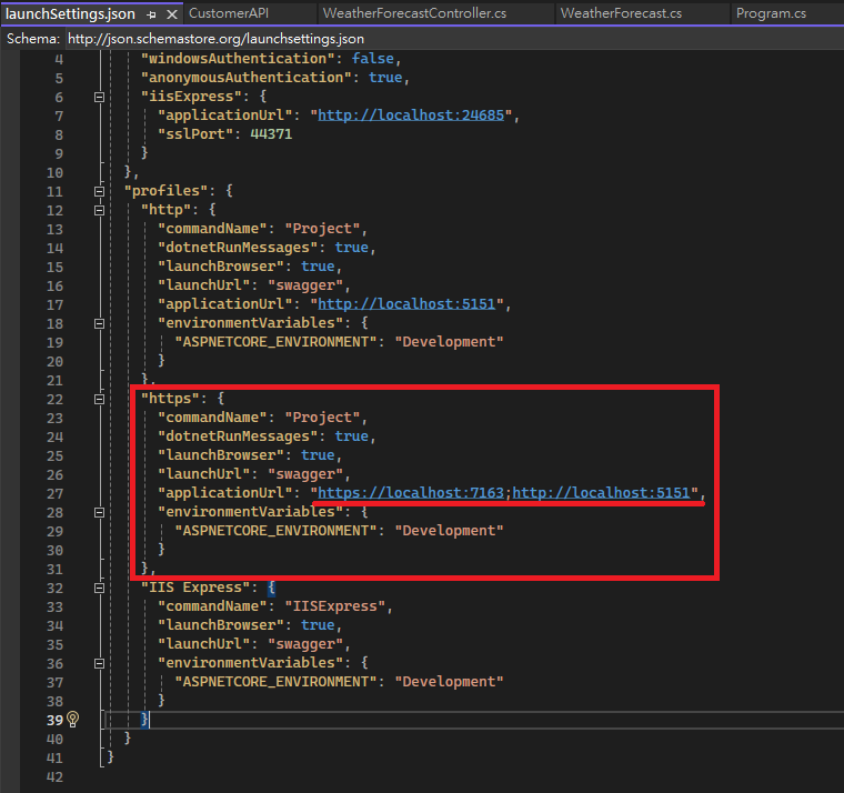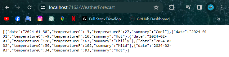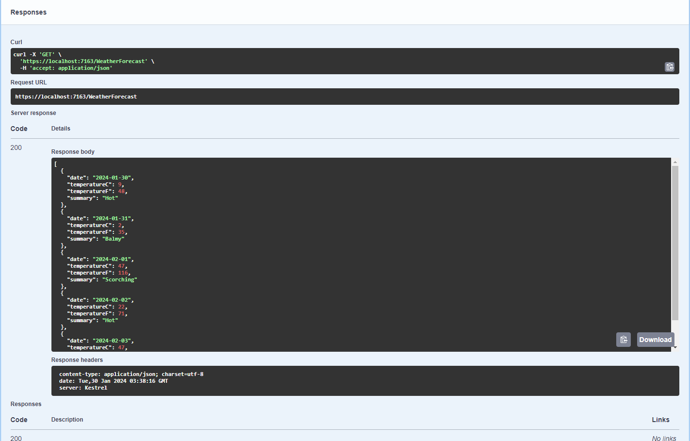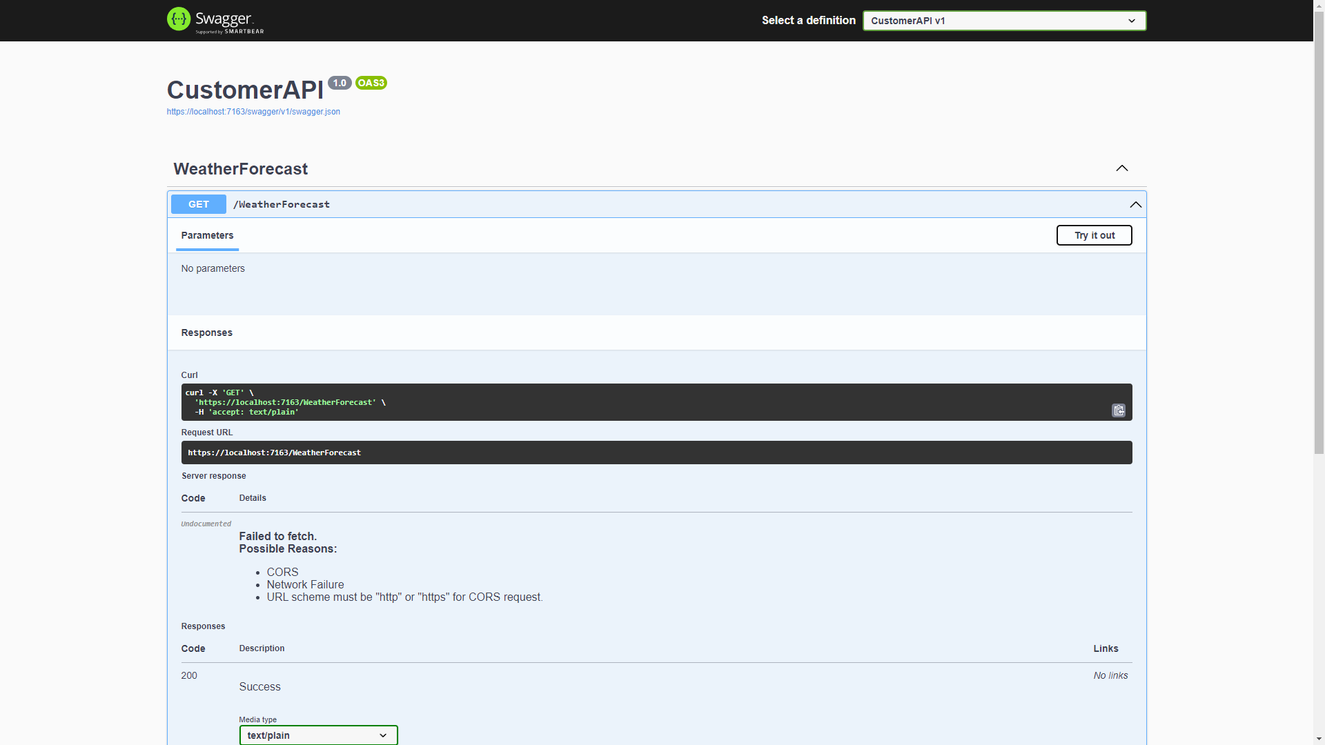 Or you can put the link {@CustomerAPI_HostAddress}/WeatherForecast to the search bar of the browser or Postman