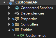 Right click on “Entities” folder, “Add” -> “new item”, create a new file call Customer.cs
