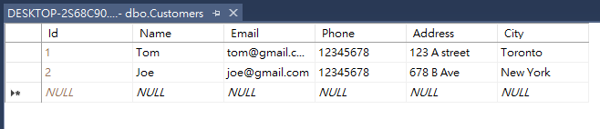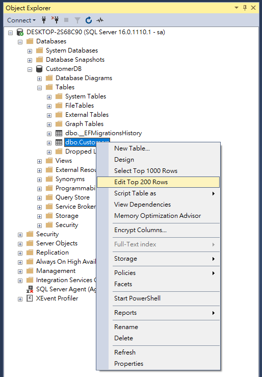 Expand Database Diagrams>expand Table>right click on dbo.Customer >Edit Top 200 Rows