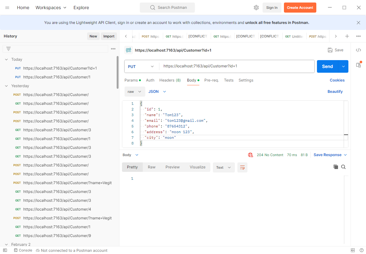 public async Task<ActionResult<Customer>> PutCustomer(int id, Customer customer)