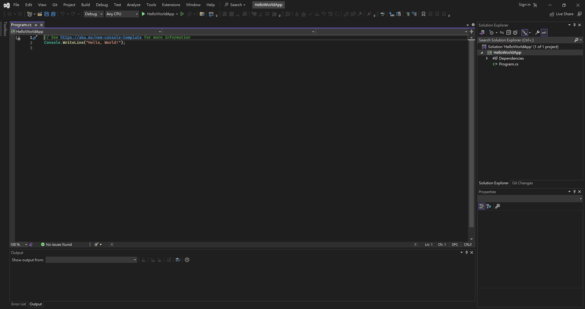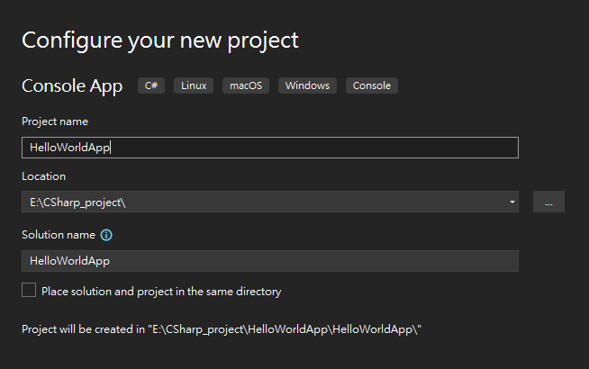 So, let us start with a small “Hello world” console app project for a warm up first.